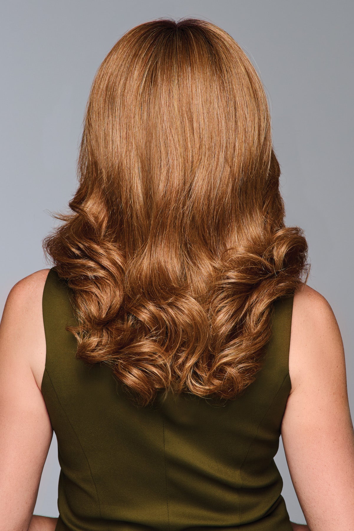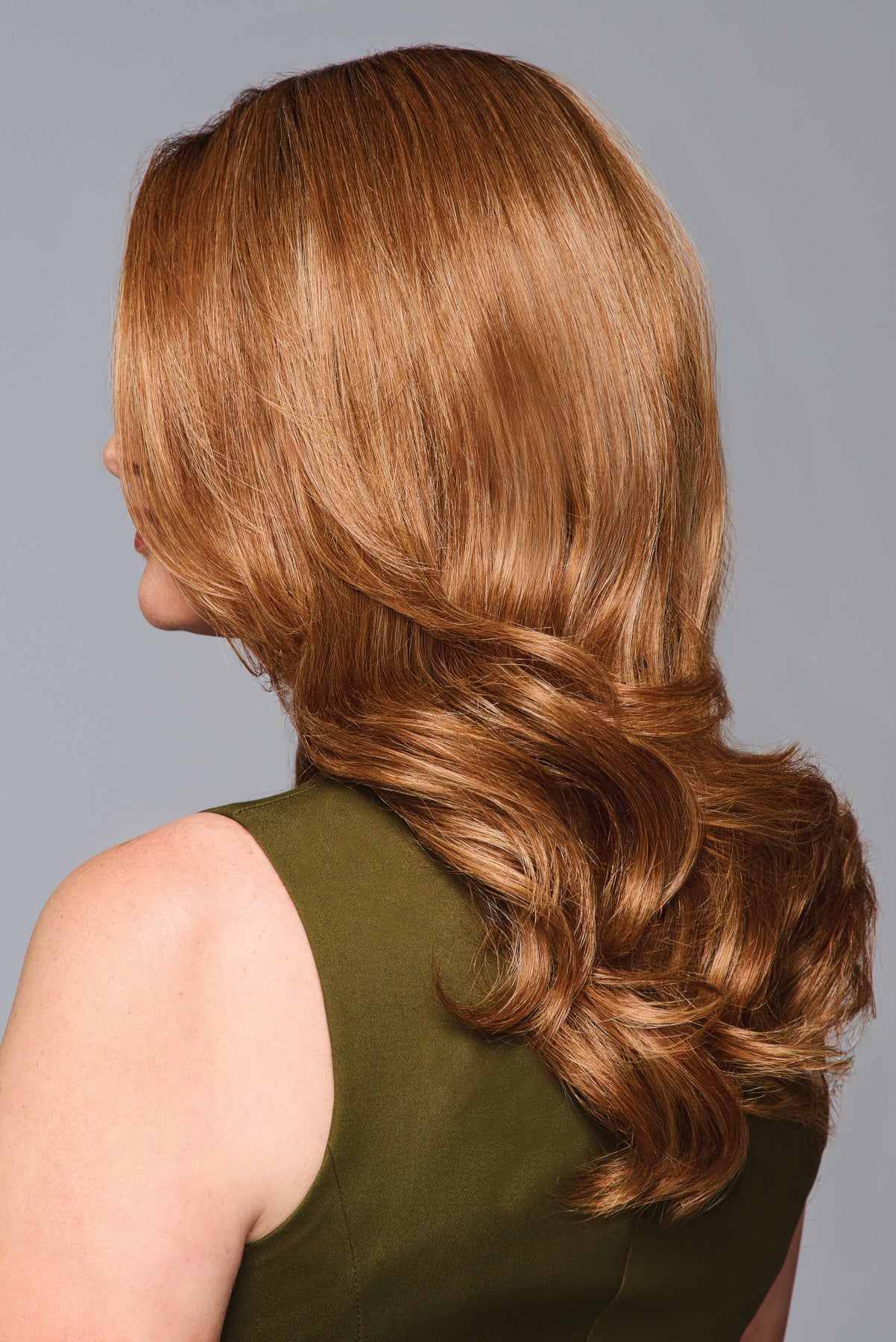 Long layers and a smooth, center-part create the look of a flawless salon blowout –without the appointment. Shoulder-length, round-brushed soft waves have just the right amount of volume. It’s polished, glamorous, and designed to make you feel like royalty.