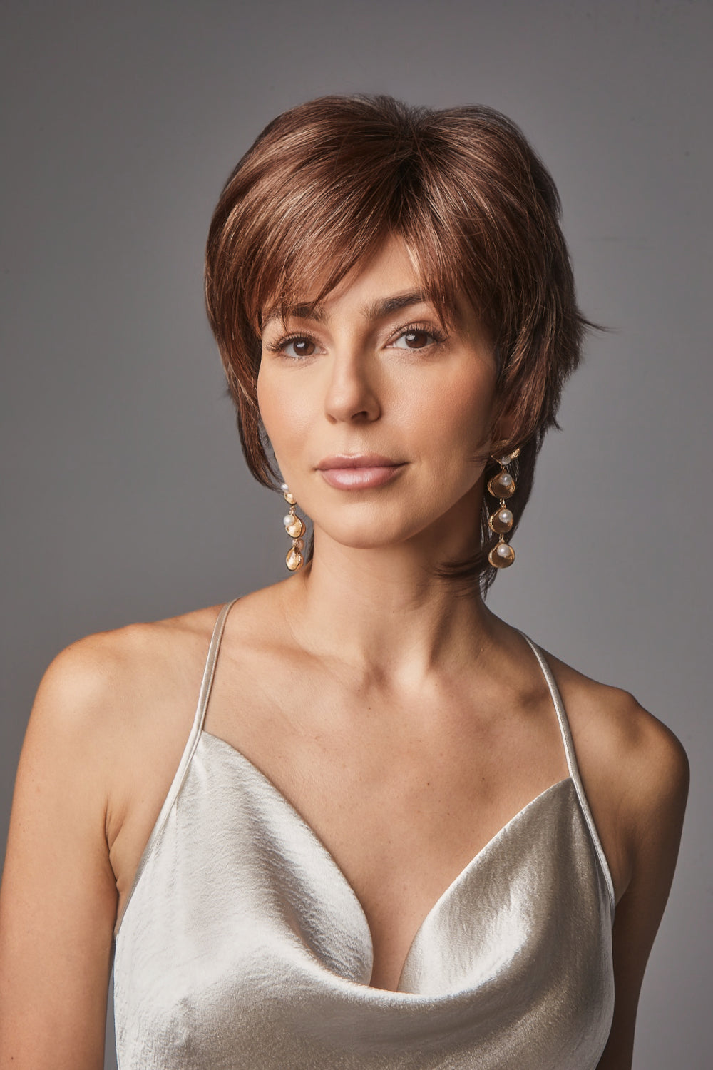 Millie from the Noriko Collection is a short-length synthetic wig. This straight ready-to-wear wig is a classic style with a modern twist.