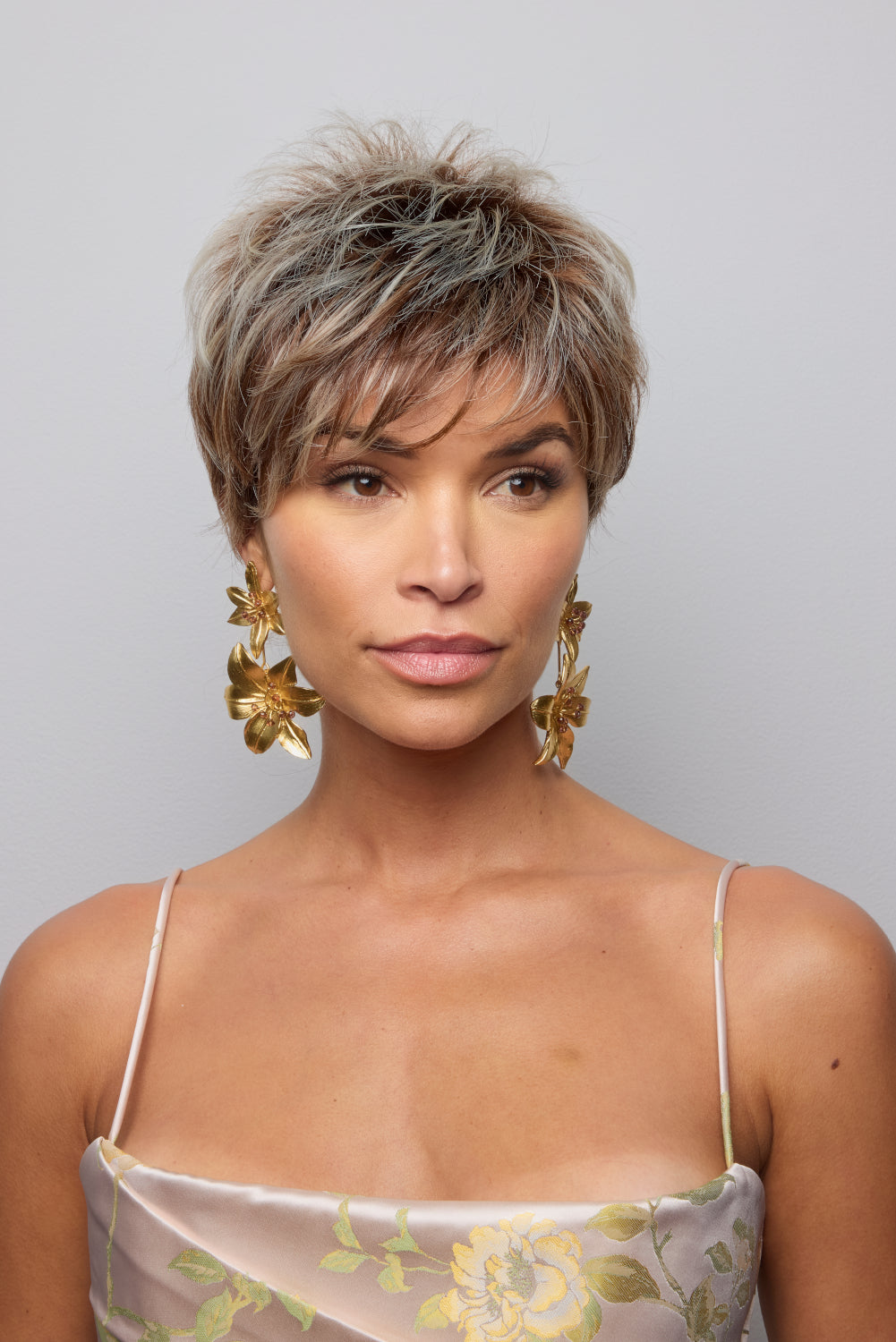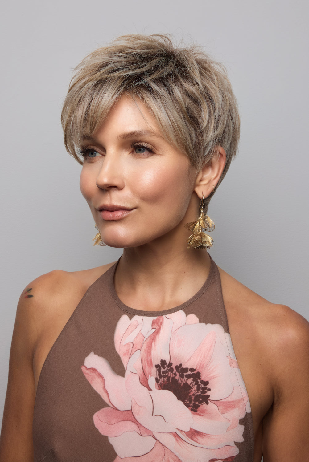 Rin from the Noriko Collection is a short-length, heat friendly wig. This straight, ready-to-wear pixie features a textured cut with a sleek, longer fringe for a stylish, modern look.