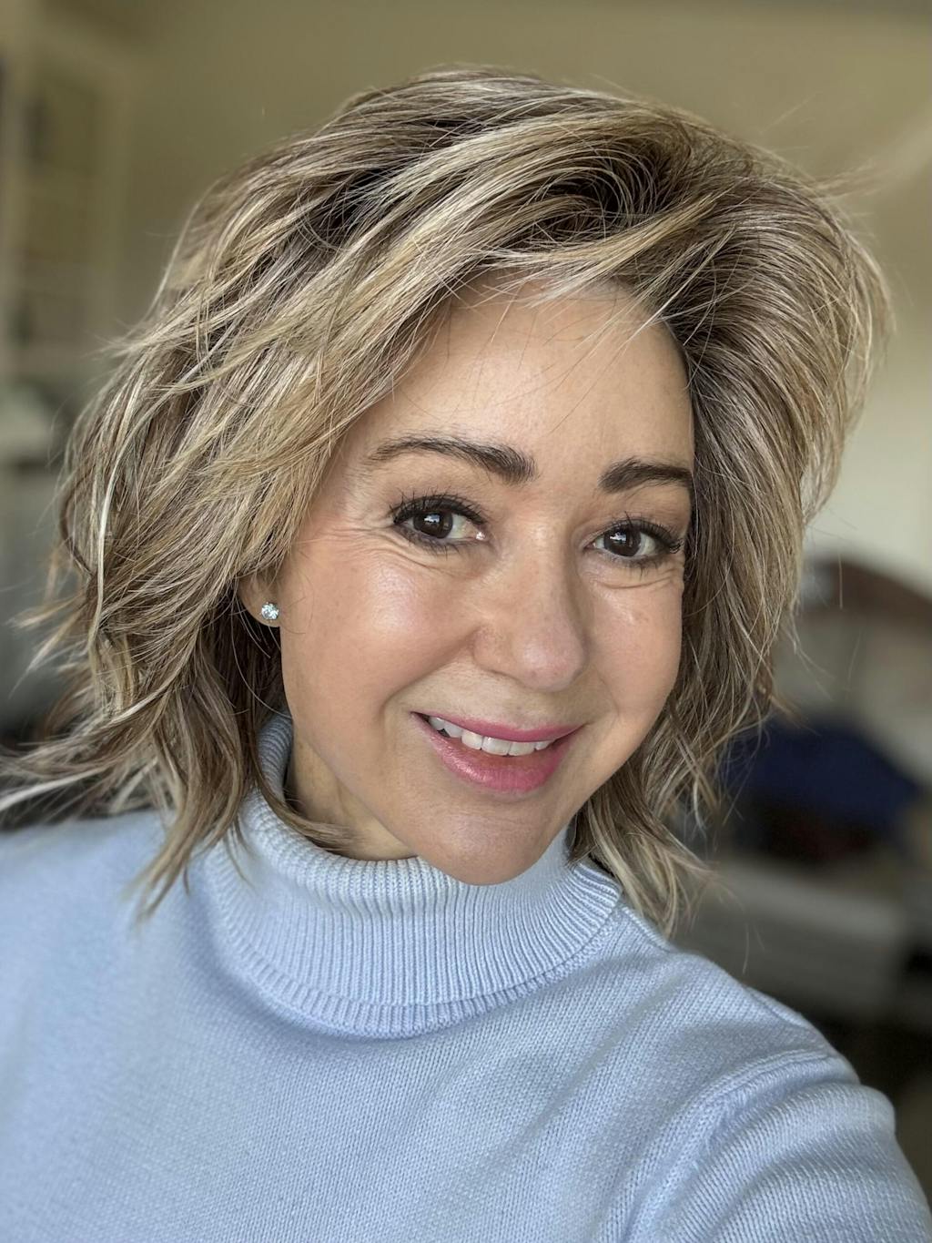 Wear this when I want short and sassy/a bit Suzie Quatro if anyone is old enough to remember. Love the colour (milkshake) and it’s nice I can have such short hair (for me) whenever I want - including a fringe (which I usually, if I’m honest, move to the side). Very happy with it. As usual service from all at Shirley’s was faultless.