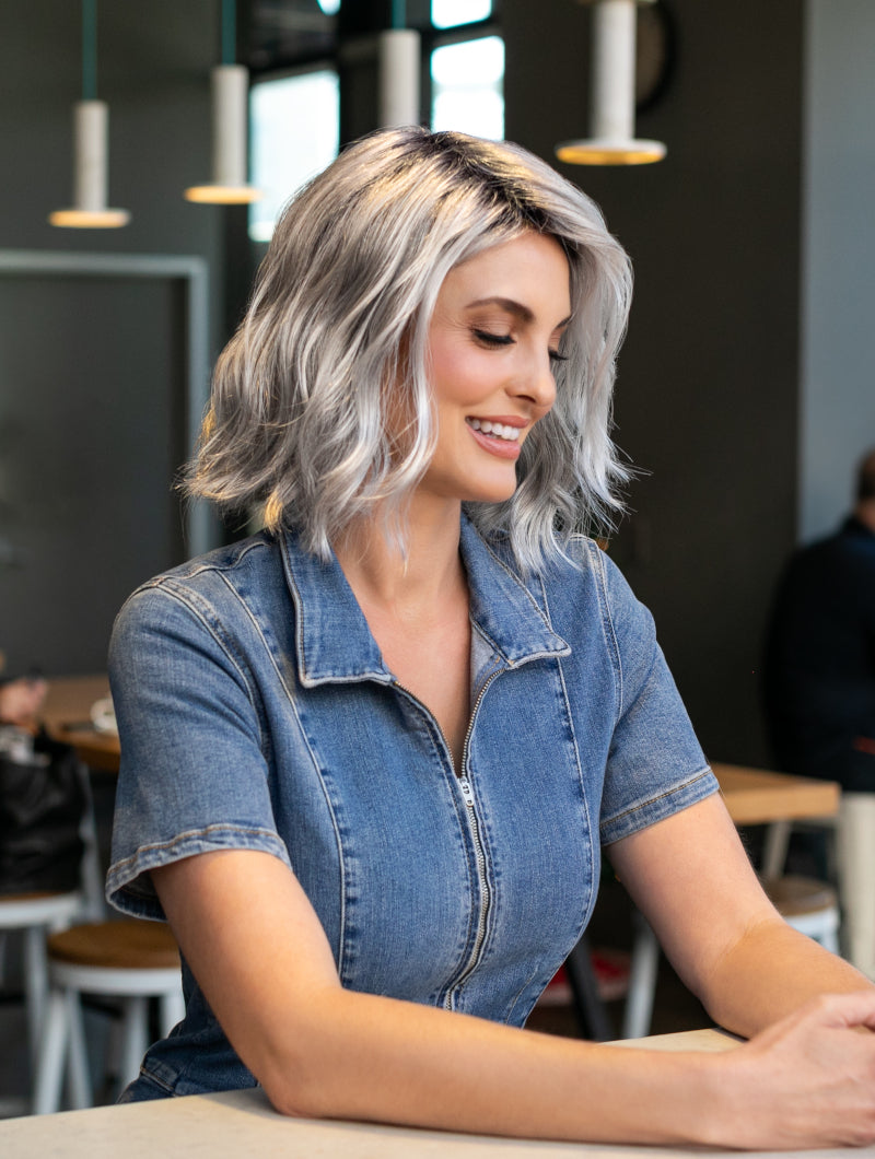 Charlotte's refined, wavy, mid-length design is interspersed with perfectly placed layers, creating an organic movement that effortlessly turns heads. The luxurious monofilament part enhances volume subtly, ensuring that your wig remains as natural as it is striking.