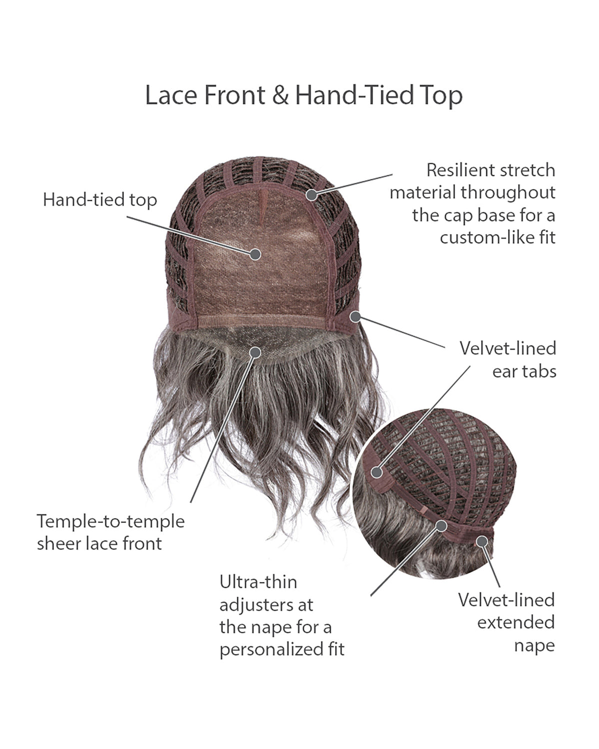 By popular request, our bestselling SWEET TALK style is now available with a fully hand-tied top for added styling options! This chin length, layered crop has the same barrel curls, blunt cut sides and bottom, and textured lengths as the original SWEET TALK, and now features a hand-tied top with sheer lace front.