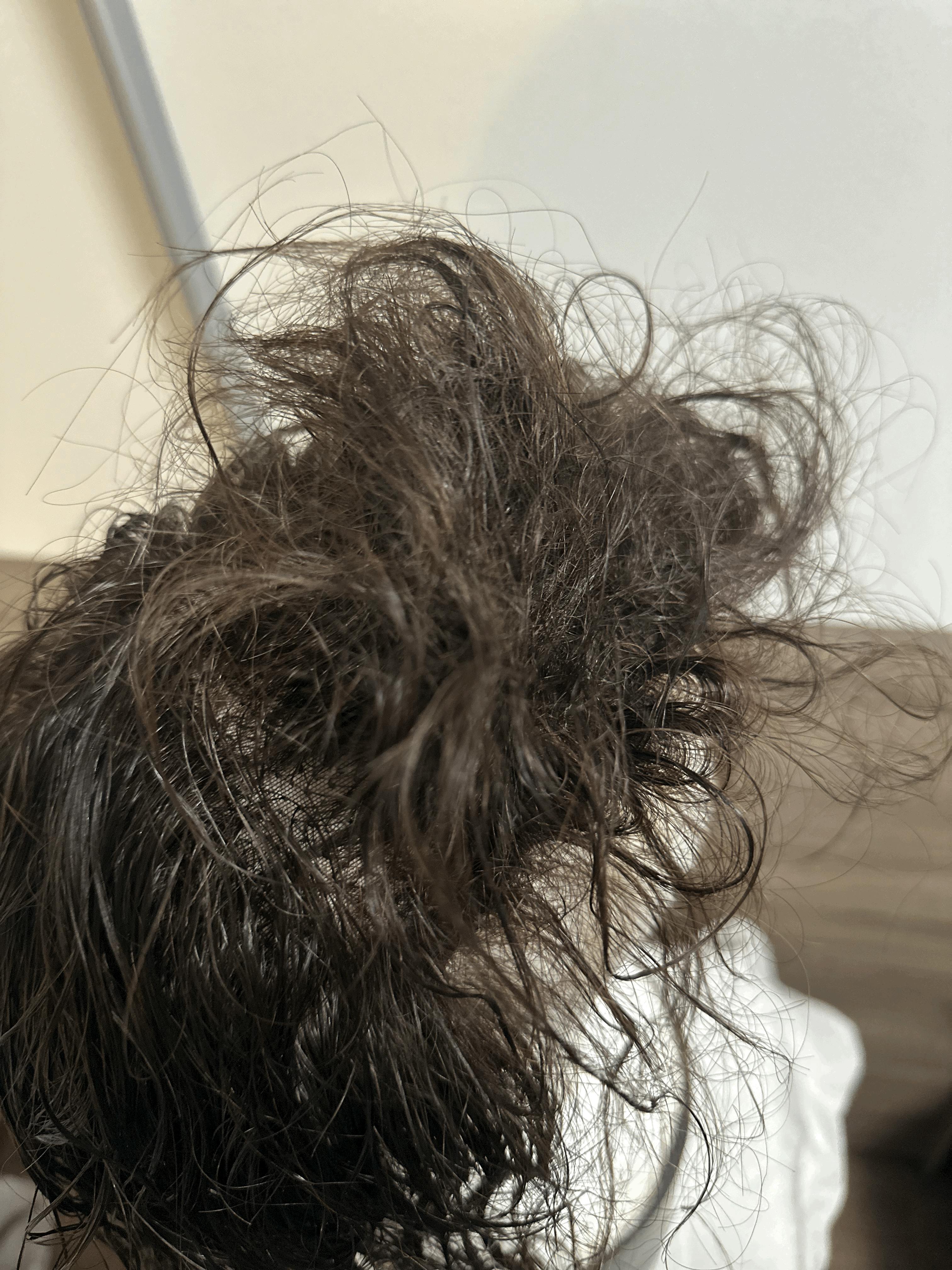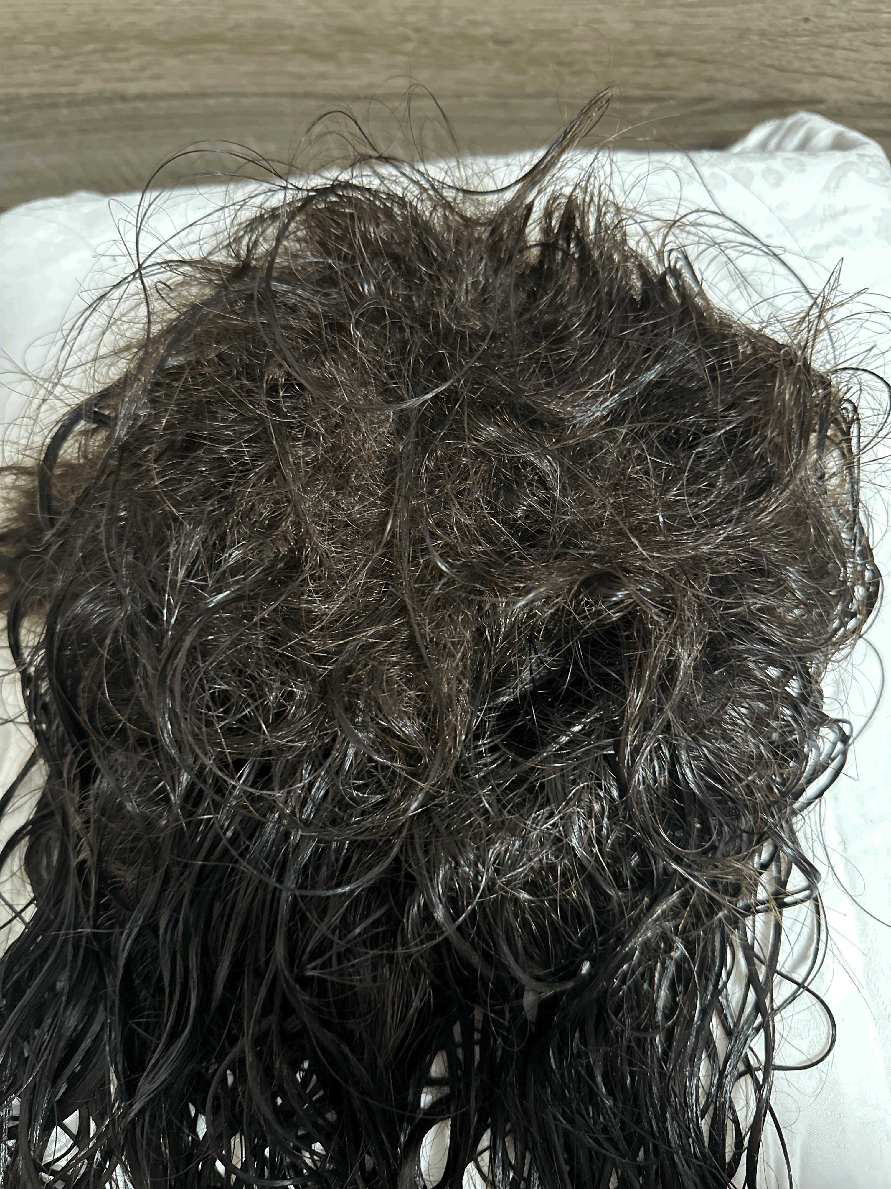 But things changed after the first wash. The texture and even the color seemed to fade a bit. It was still soft, but it didn’t dry straight anymore. I didn’t mind that at first because it still looked quite natural. The real problem quickly became clear — the hair puffed up and tangled like crazy, especially in the nape area. I used Ellen Wille products for human hair wigs, so I know it wasn’t because of the wrong care.