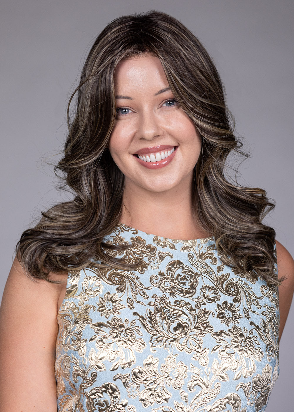 Roberts is designed with an extended lace front for a seamless, realistic hairline and off-the-face styling versatility. The full monofilament top allows for natural-looking parting and a true-to-scalp appearance, while the partially hand-tied cap enhances comfort and flexibility throughout the day. With its elegant length, face-framing layers, and customizable heat friendly fibers, Roberts offers timeless sophistication with modern styling freedom.