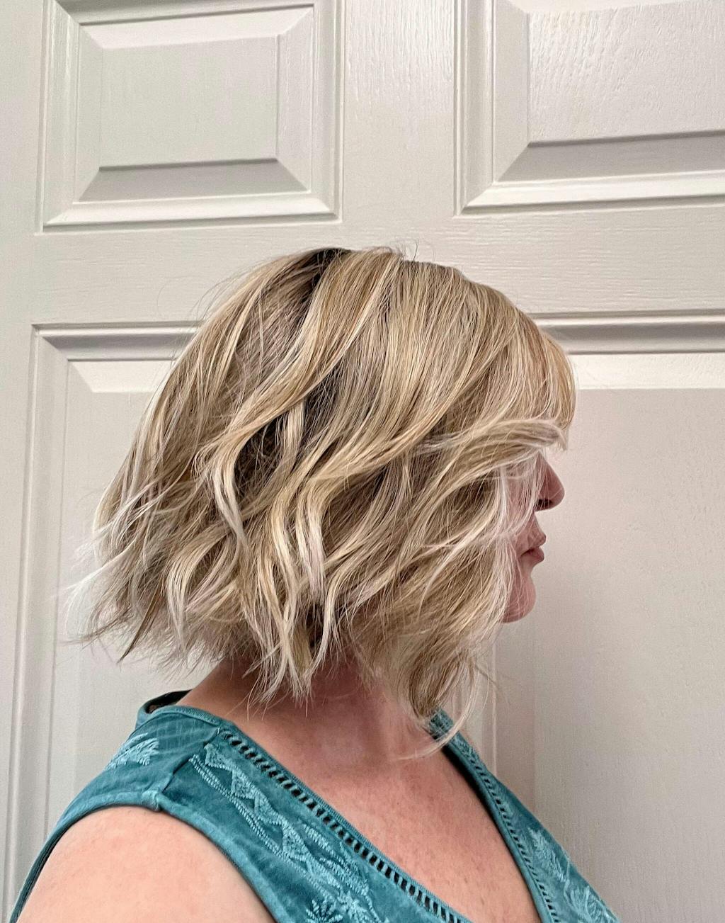The soft texture bob works well with many face shapes. Utilize the wispy fringe to enhance volume and appearance. Mira is an extended lace front, monofilament top with velcro adjustable in the back-nape area to allow a more comfortable fit.