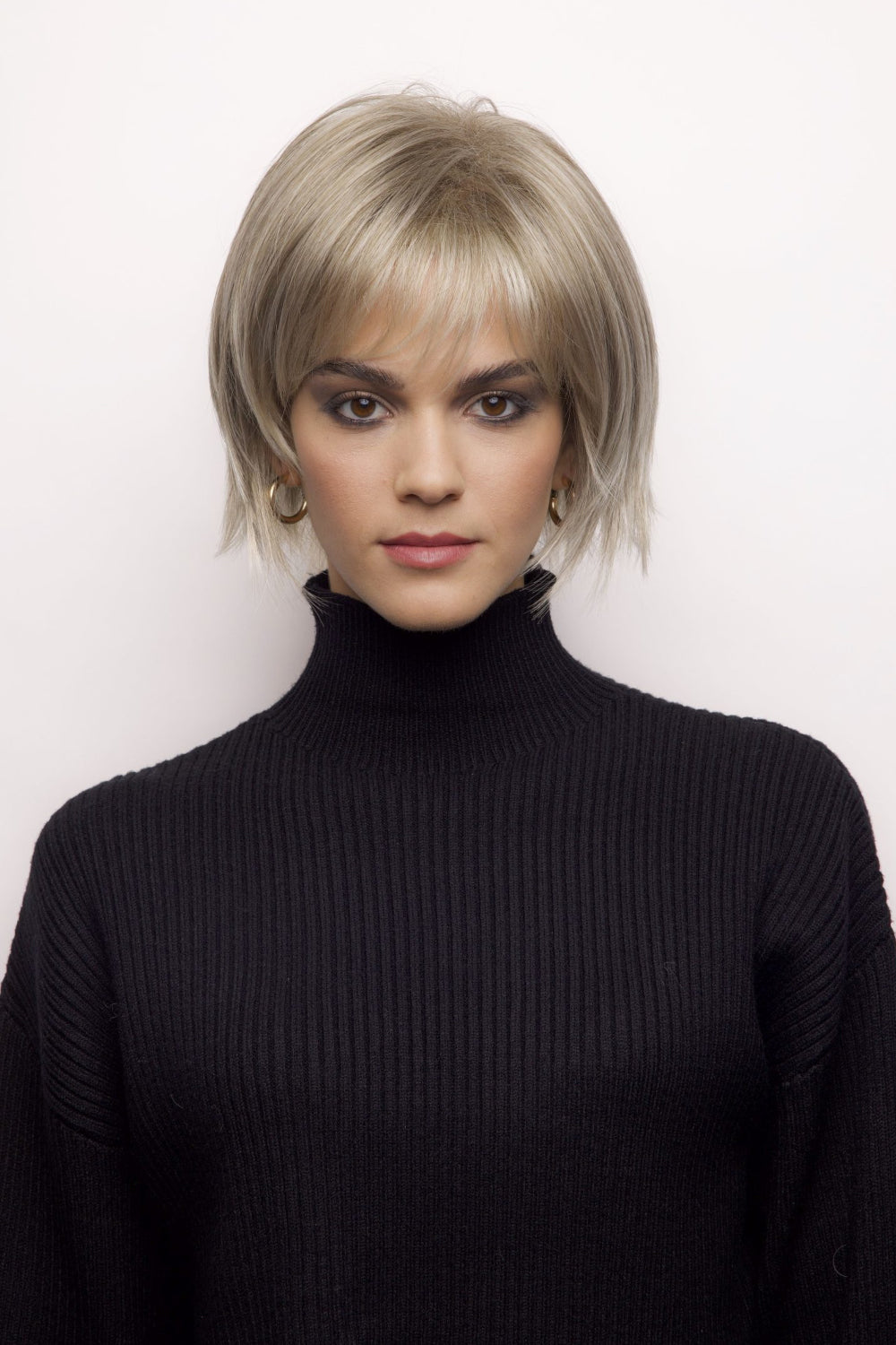 Pax from the Rene of Paris Hi-Fashion Collection is a short-length, straight, ready to wear synthetic wig. It is a beautiful, layered bob with feathered full fringe.