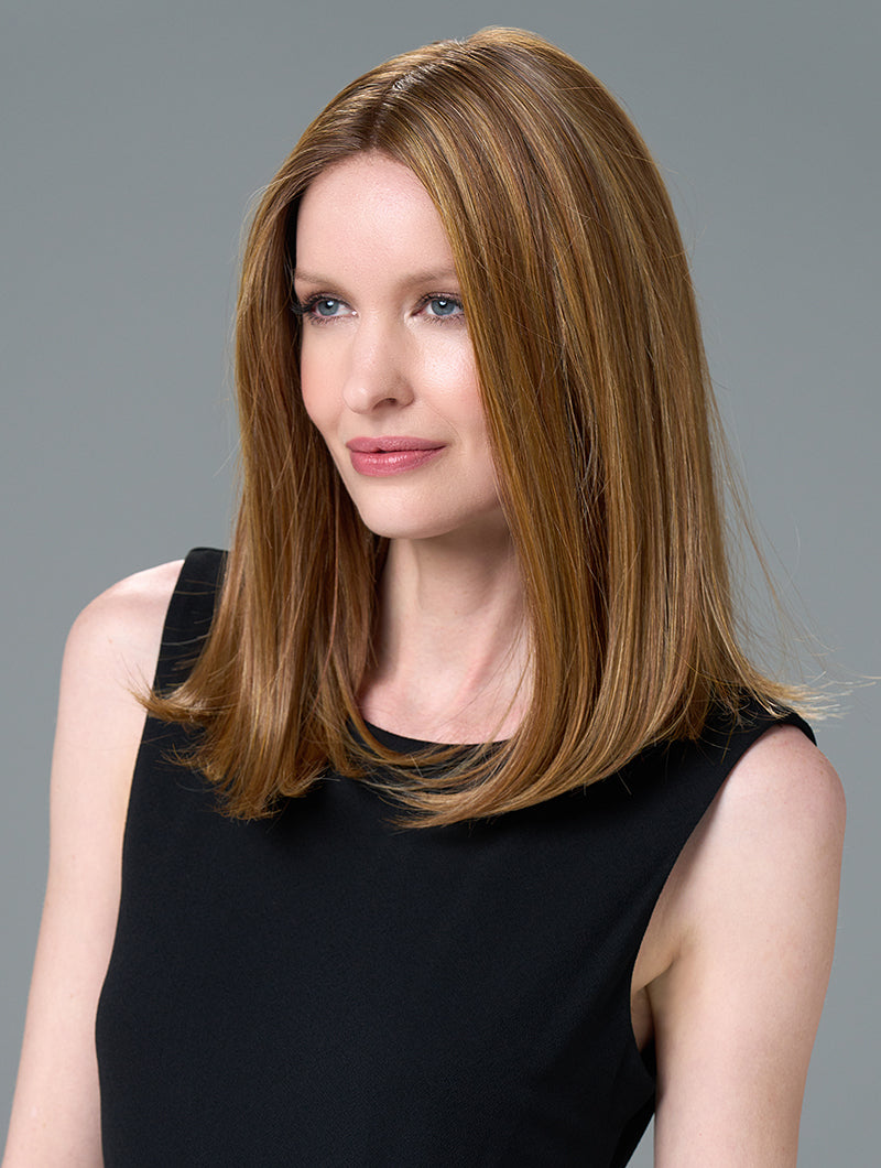 Chelsea by Envy Wigs is a modern, medium-length wig with sleek, straight layers that move naturally. Designed with a lace front, monofilament top, and fully hand-tied cap, it offers realistic parting, lightweight comfort, and endless styling possibilities. Crafted from our exclusive human hair and heat-friendly fiber blend for ultimate versatility.