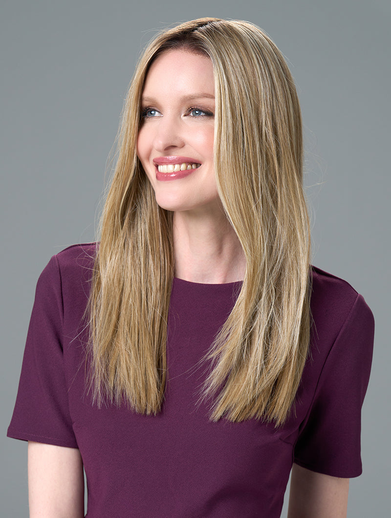 Veronica by Envy Wigs is a long, layered wig with sleek, straight strands and natural movement. The lace front and monofilament top create a seamless hairline and realistic parting, while the hand-tied cap ensures lightweight comfort. Crafted from human hair and heat-friendly fiber for endless styling versatility.