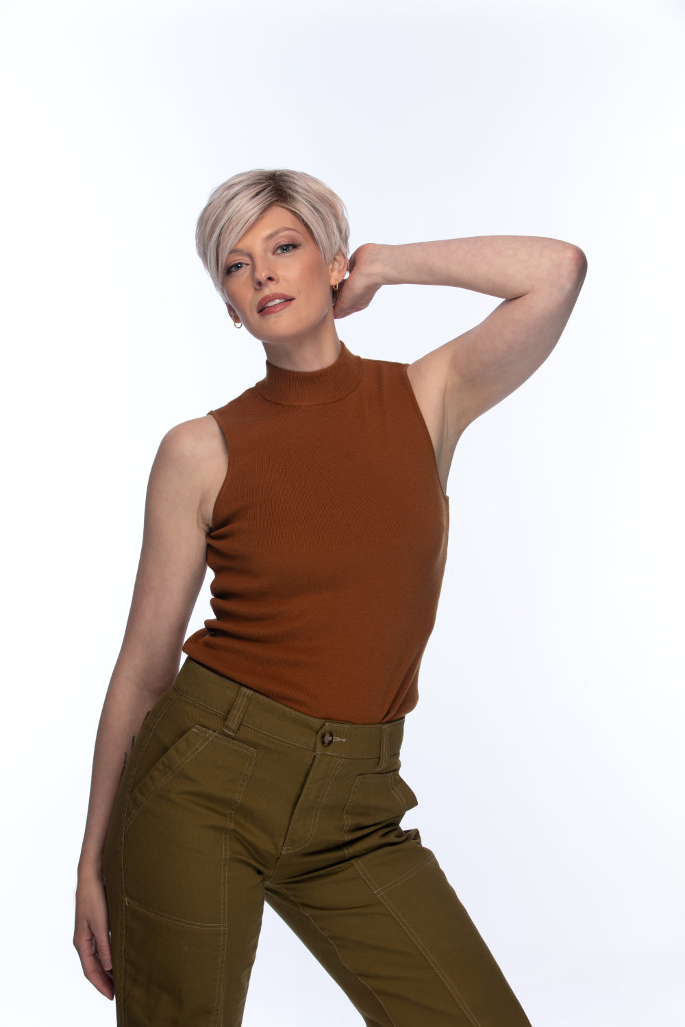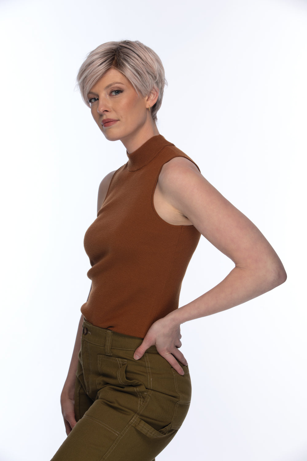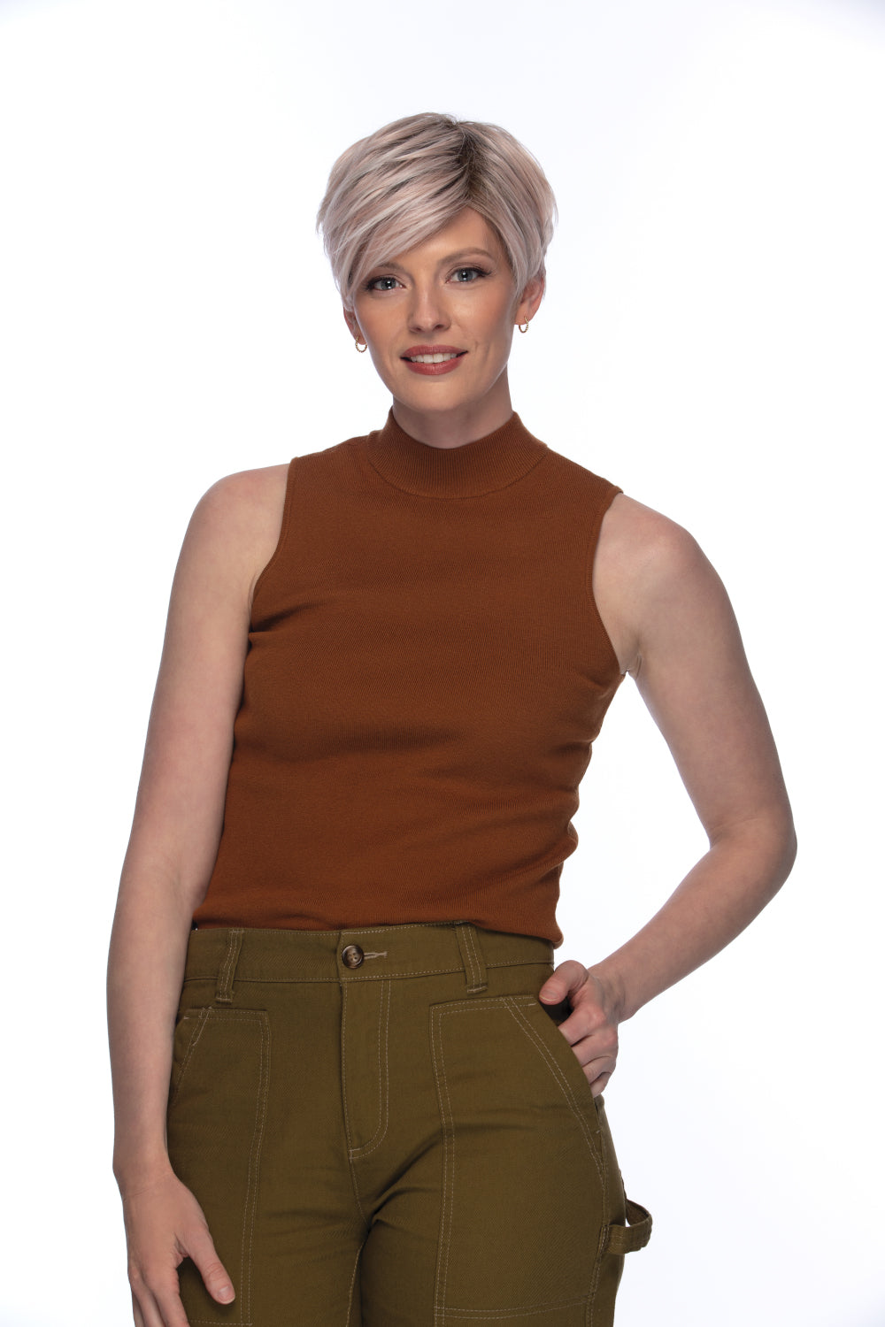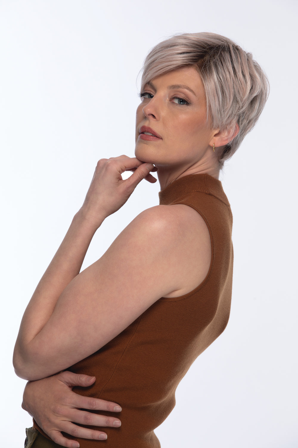 Have fun with Jett, a bold, asymmetric pixie featuring a sheer lace front. Subtle layering allows for natural movement, so you can muss her up for a sleek and edgy look or keep it soft and simple.