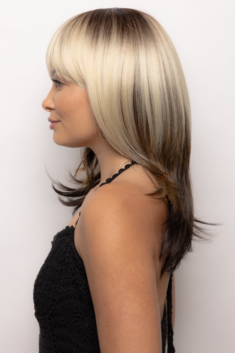 Spellbound is a mid-length high heat wig. This straight ready-to-wear wig is a captivating style with its long flowing layers and heavy fringe frame.